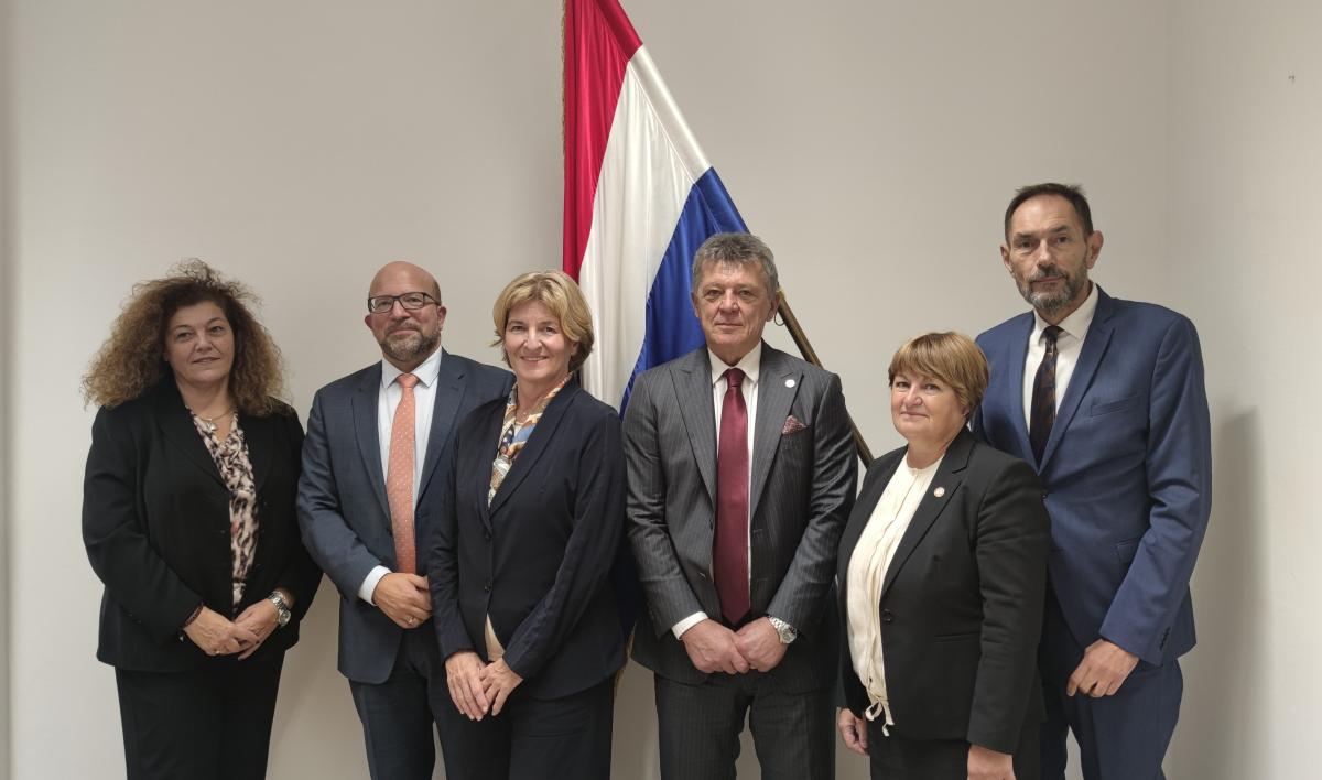 Uz Glavnog državnog odvjetnika Republike Hrvatske Ivana Turudića, univ.spec.crim., izaslanstvo su primili zamjenici Glavnog državnog odvjetnika Republike Hrvatske Gordana Križanić, prva zamjenica, Andrea Šurina Marton, voditeljica Kaznenog odjela i Dražen Jelenić, voditelj Odsjeka za međunarodnu pravnu pomoć i suradnju.